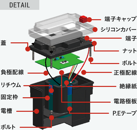 ※正極にLifeP04を採用することでガスによる発火や爆発の危険性を低減し、高い安全性を実現しています。