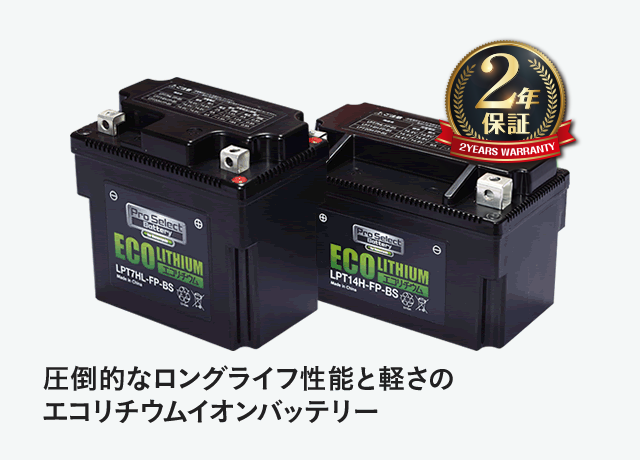 小型で軽量、そしてロングライフが特長のエコリチウムイオンバッテリーシリーズ。従来の鉛バッテリーに対して、約3分の1という圧倒的な軽さを実現しながら、約1.5~2倍もの長寿命を誇ります。交換サイクルが長い環境に優しいバッテリーです。